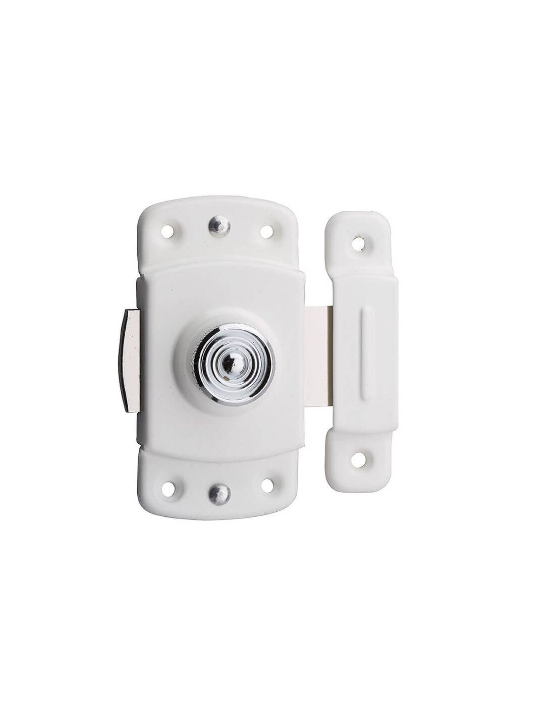 Acest zăvor de mobilier cu buton rotativ reprezintă o variantă de încuietoare automată mecanică, în care acționarea bolțului plat culisant se realizează prin intermediul rotirii comode a unui buton rotativ. Acest zăvor cu bolț plat se pretează pentru ușile mobilierului (dulapuri, birouri, etc.), dar și pentru alte tipuri de uși mai mici și mai ușoare. Instalarea este foarte facilă, datorită prinderii în șuruburi, iar finisajul alb lăcuit îi asigură, pe lângă un aspect modern, și o rezistență crescută la factorii de mediu, astfel de încuietori automate putând fi utilizate și în exterior.